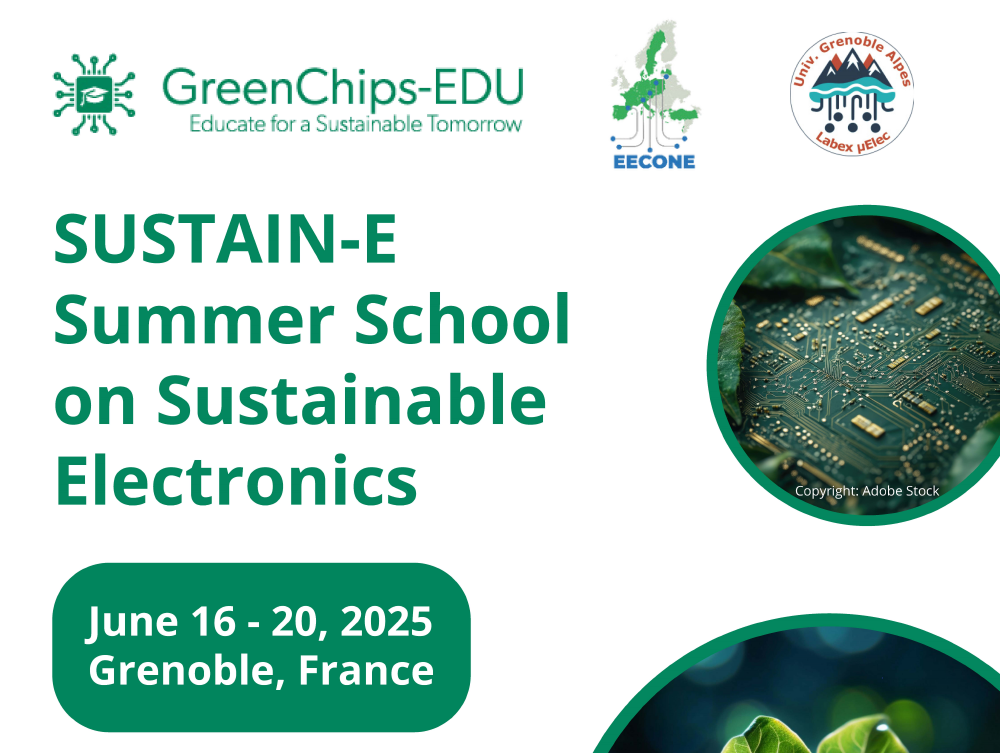 Le projet européen GreenChips-EDU porté par Grenoble INP, organise une Summer School sur l'électronique durable en collaboration avec le projet européen EECONE et le Labex Microélectronique (UGA).